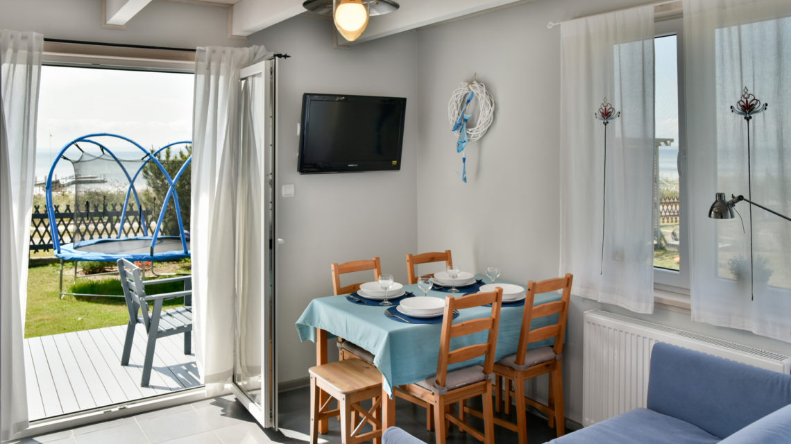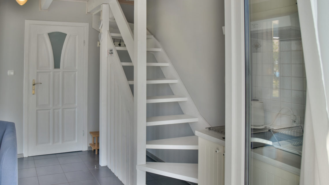Drewniany domek jednorodzinny o powierzchni 36m² umożliwia komfortowy pobyt 4 osób. W domku znajduje się jedna otwarta sypialnia na poddaszu wyposażona w 2 pojedyncze łóżka (80x200cm) i 1 podwójne (140x200cm), na parterze jest pokój dzienny z w pełni wyposażonym aneksem kuchennym i łazienka z prysznicem.